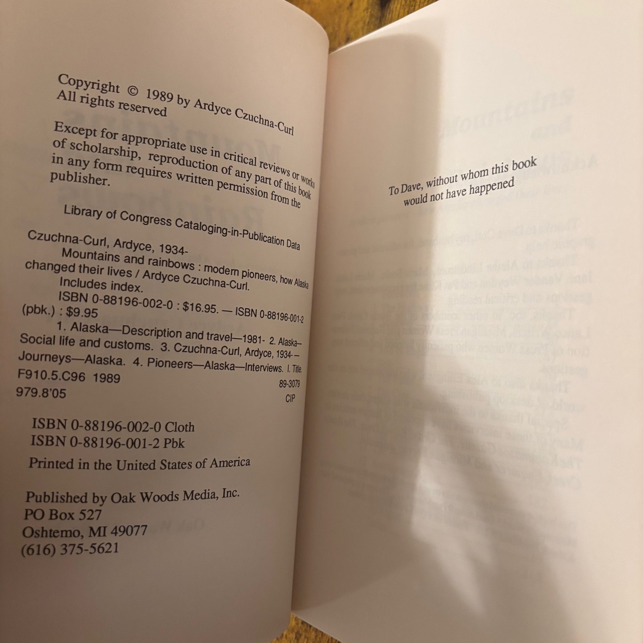 Ardyce Czuchna-Curl, ‘Mountains and Rainbows,’ Oak Woods Media, 1989. No edition stated–presumed first paperback.