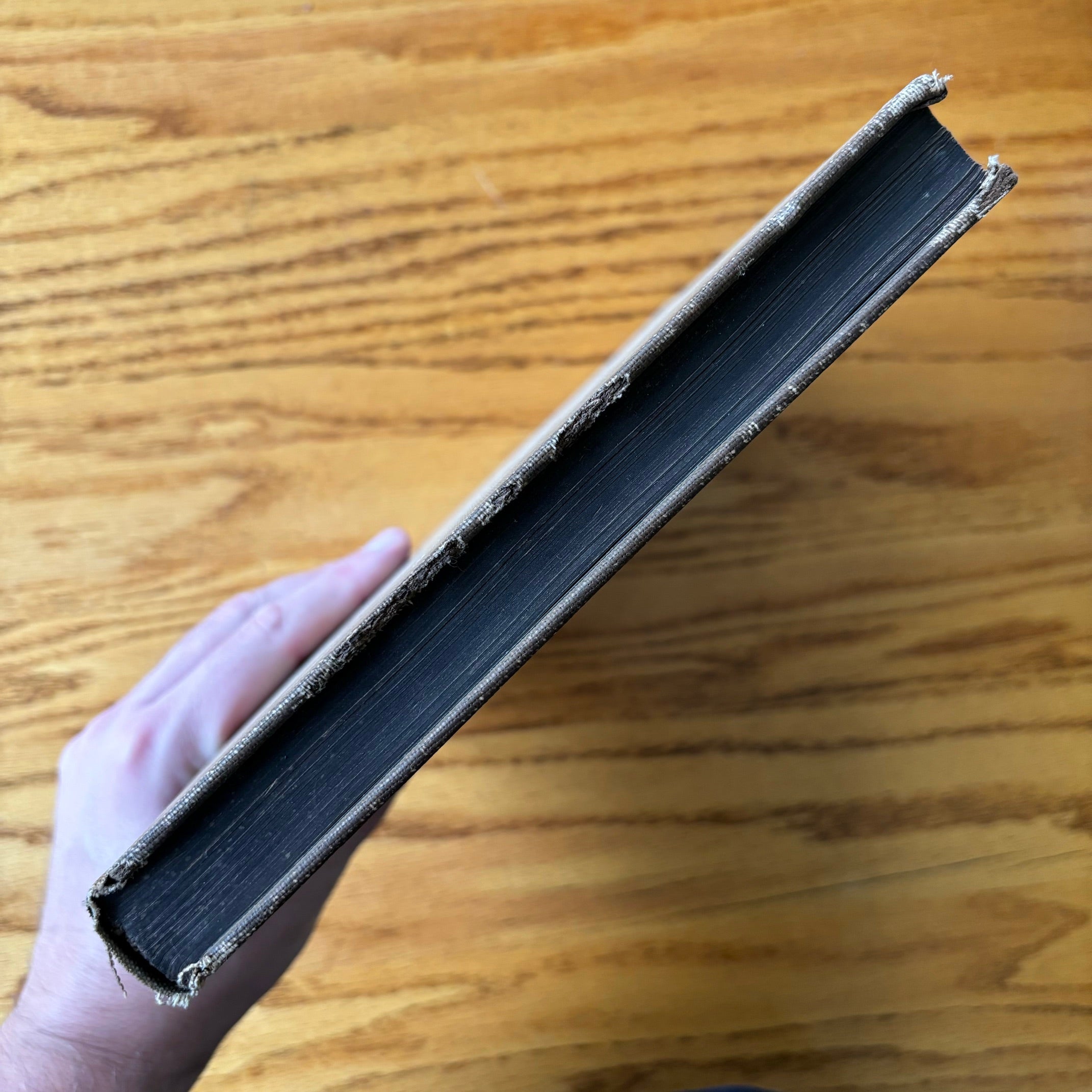 Heavy rubbing at spine ends and corners, along with some lighter edge rubbing and an isolated spot of heavy rubbing on spine as well. General darkening and discoloration to boards. Notable musty odor. Binding remains sound, interior clean.