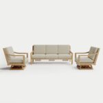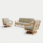 Complete outdoor heated sofa set with plush cushions and built-in heating. Crafted from sustainably sourced teak frame for lasting durability. Features adjustable heating levels for personalized comfort. Perfect for year-round outdoor enjoyment on patios, decks and backyards.