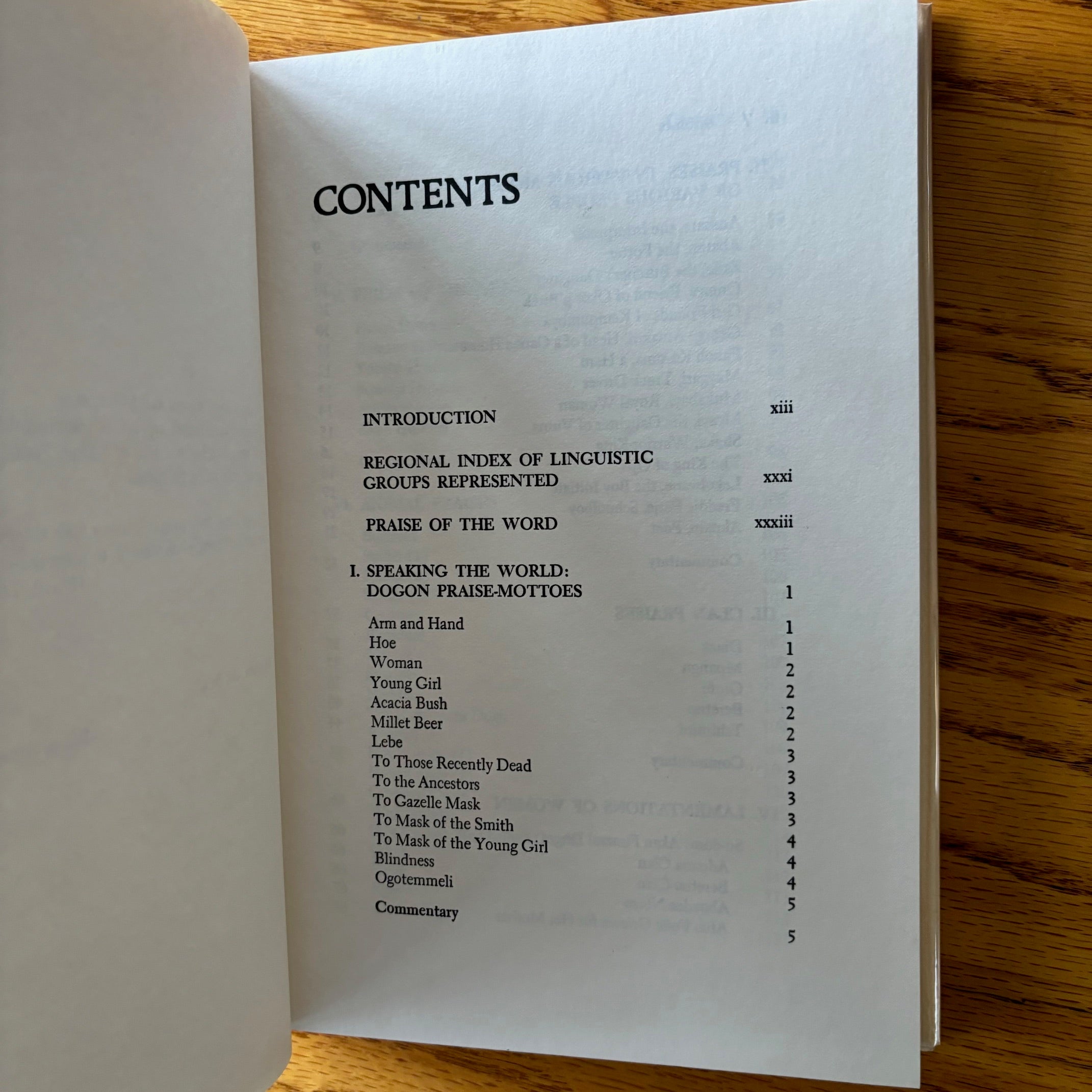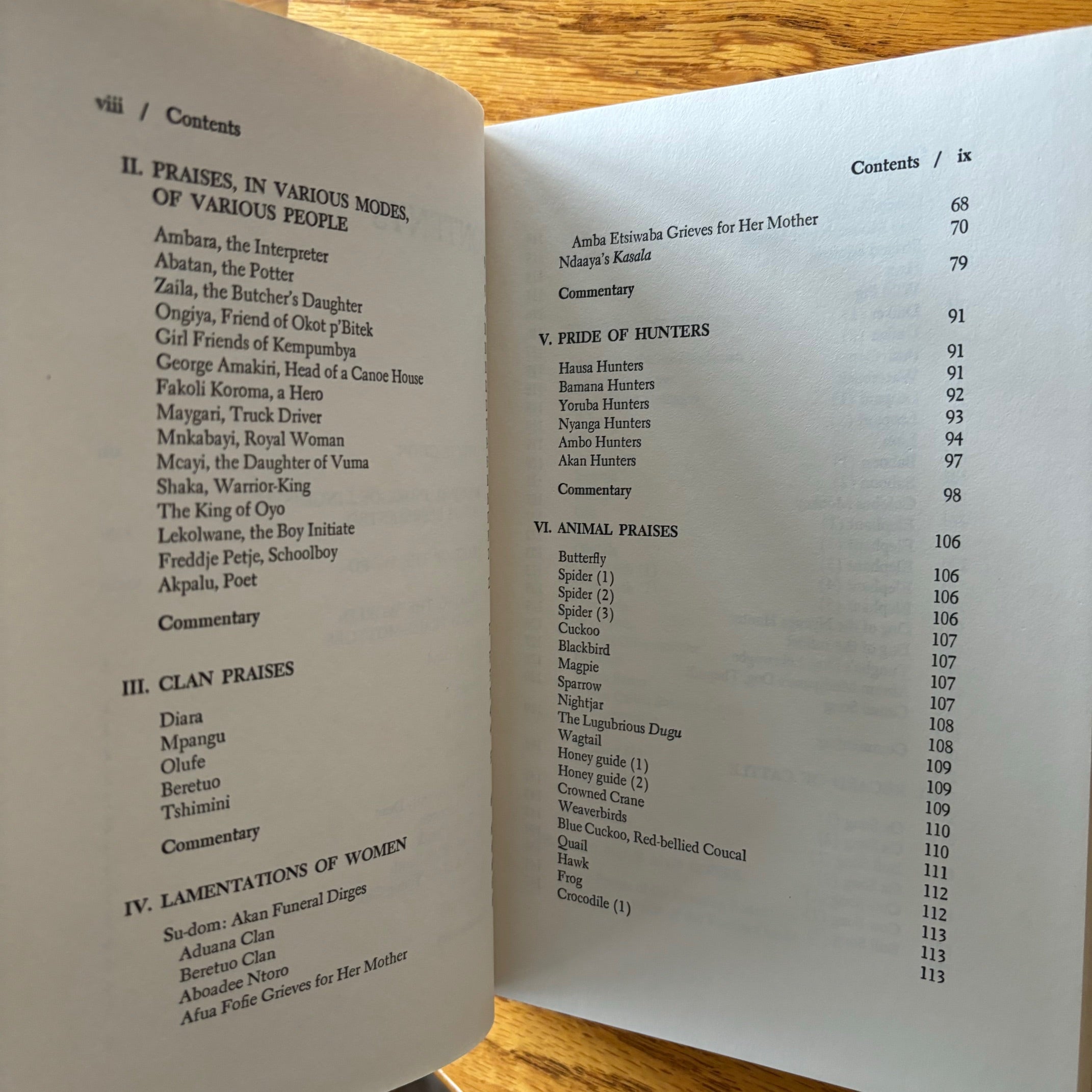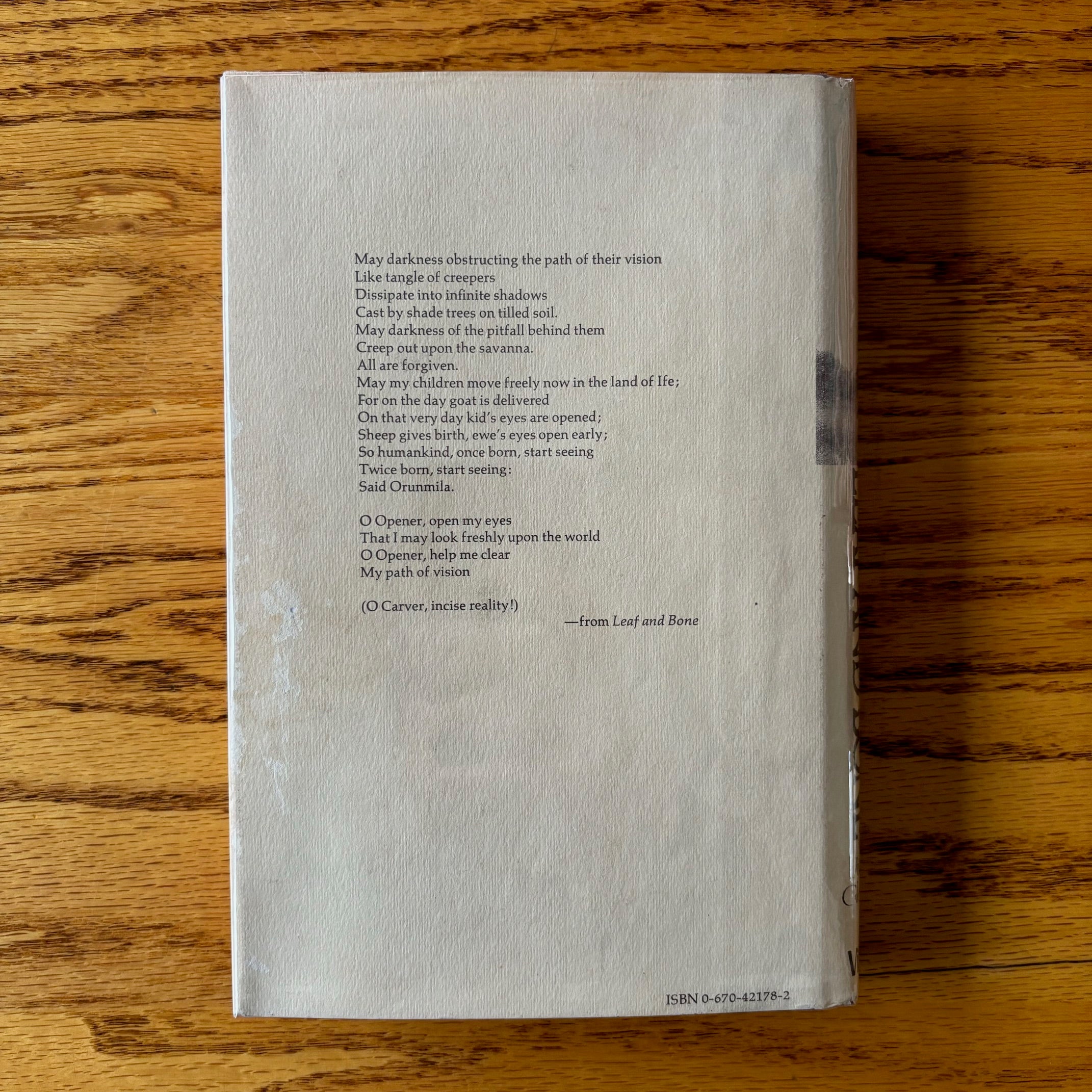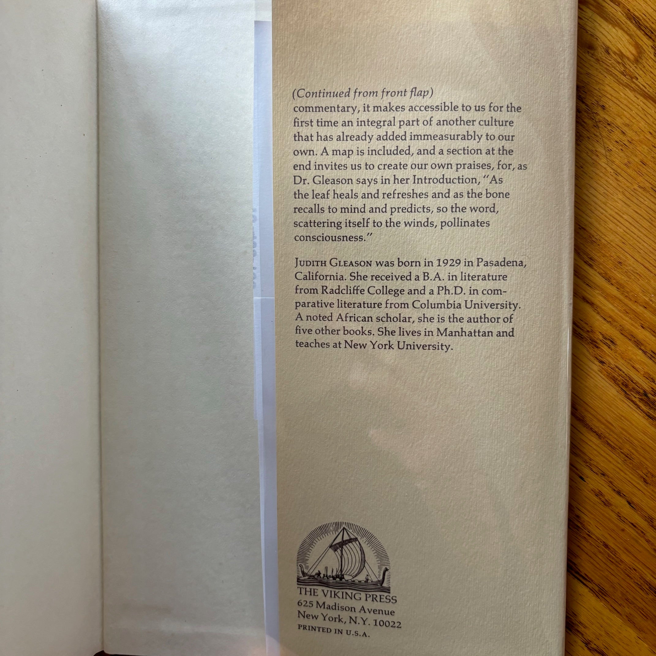 Judith Gleason, ed., ‘Leaf and Bone: African Praise-Poems,’ Viking Press, 1980. Commentary by the editor. First edition.