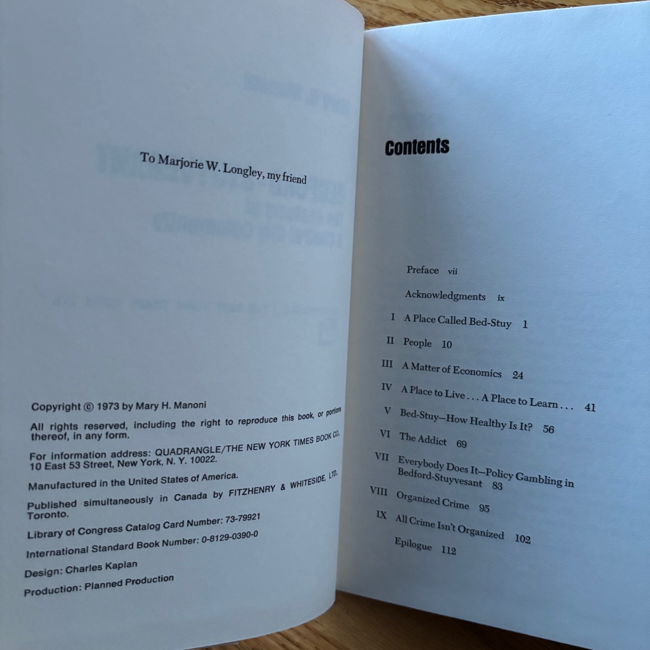 Mary H. Manoni, ‘Bedford Stuyvesant: The Anatomy of a Central City Community,’ Quadrangle / The New York Times Book Company, 1973.