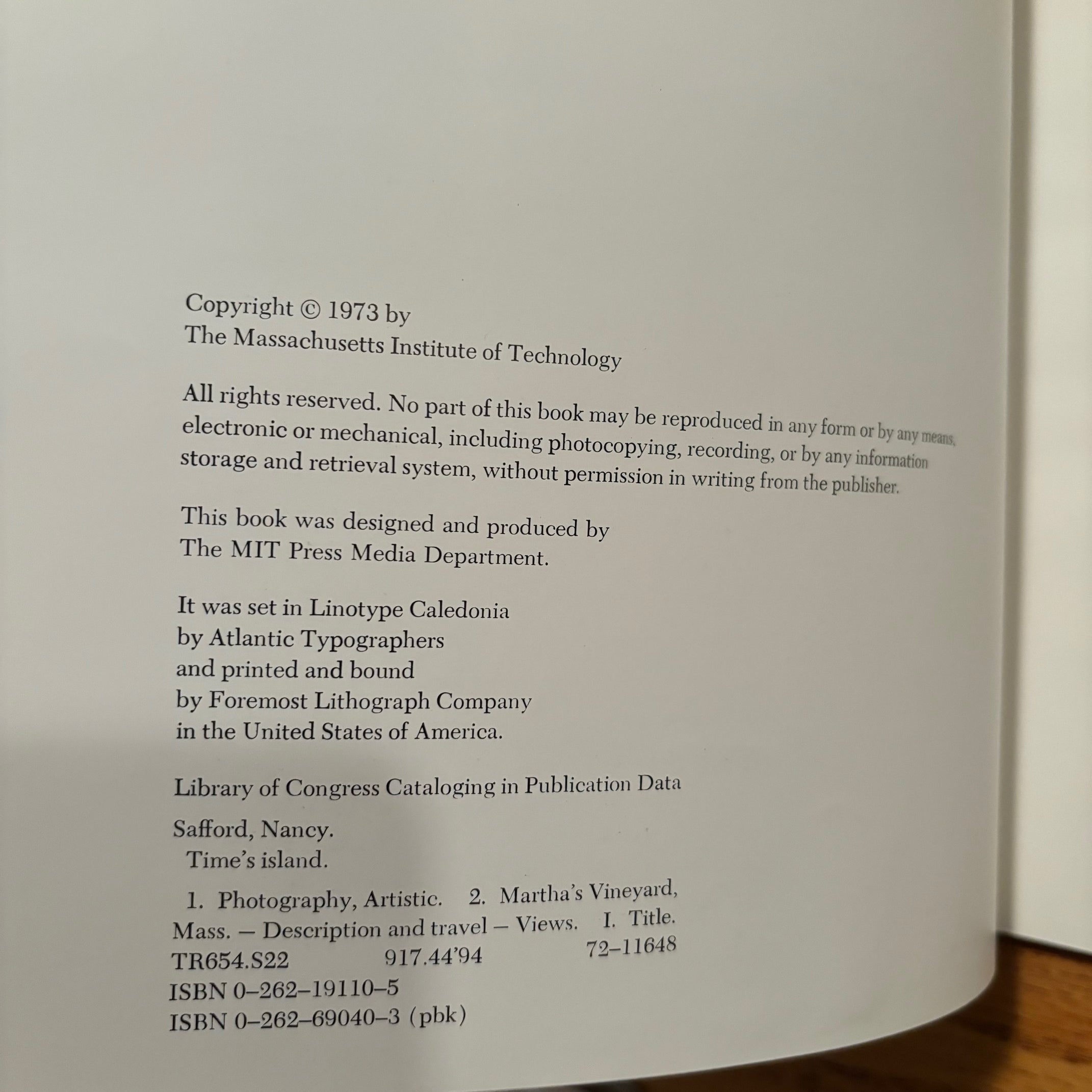 Nancy Safford, ‘Time’s Island: Portraits of the Vineyard,’ MIT Press, 1973. First edition.