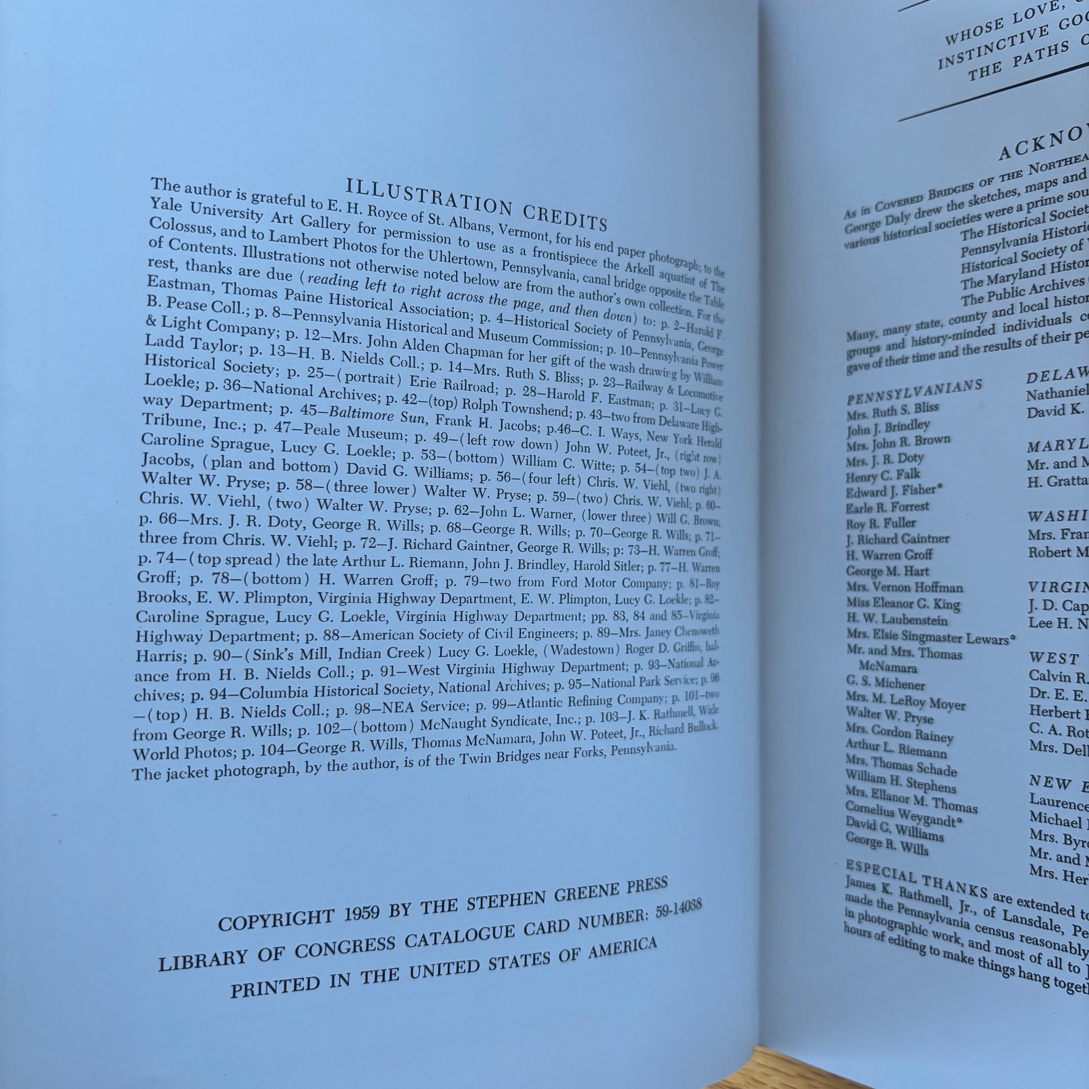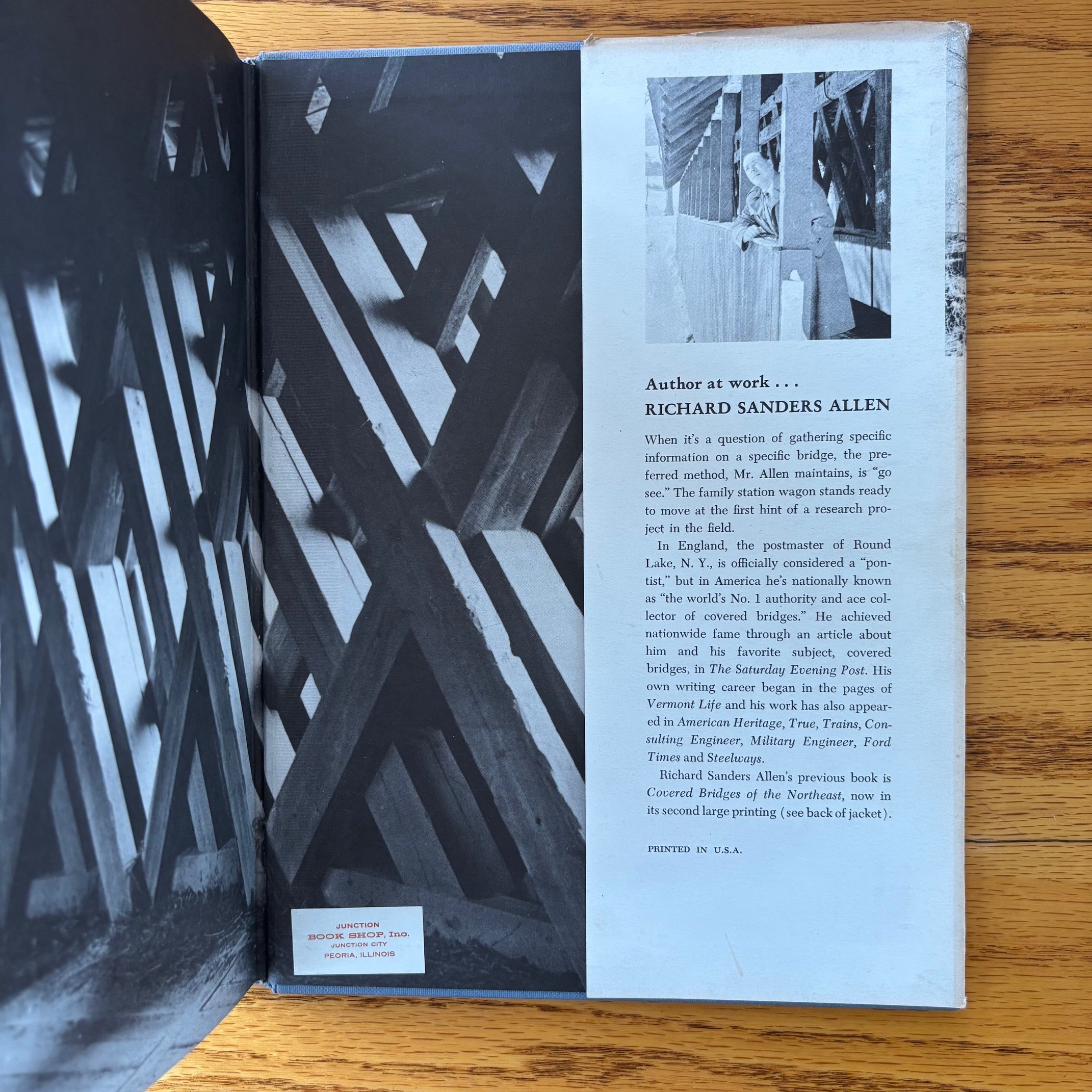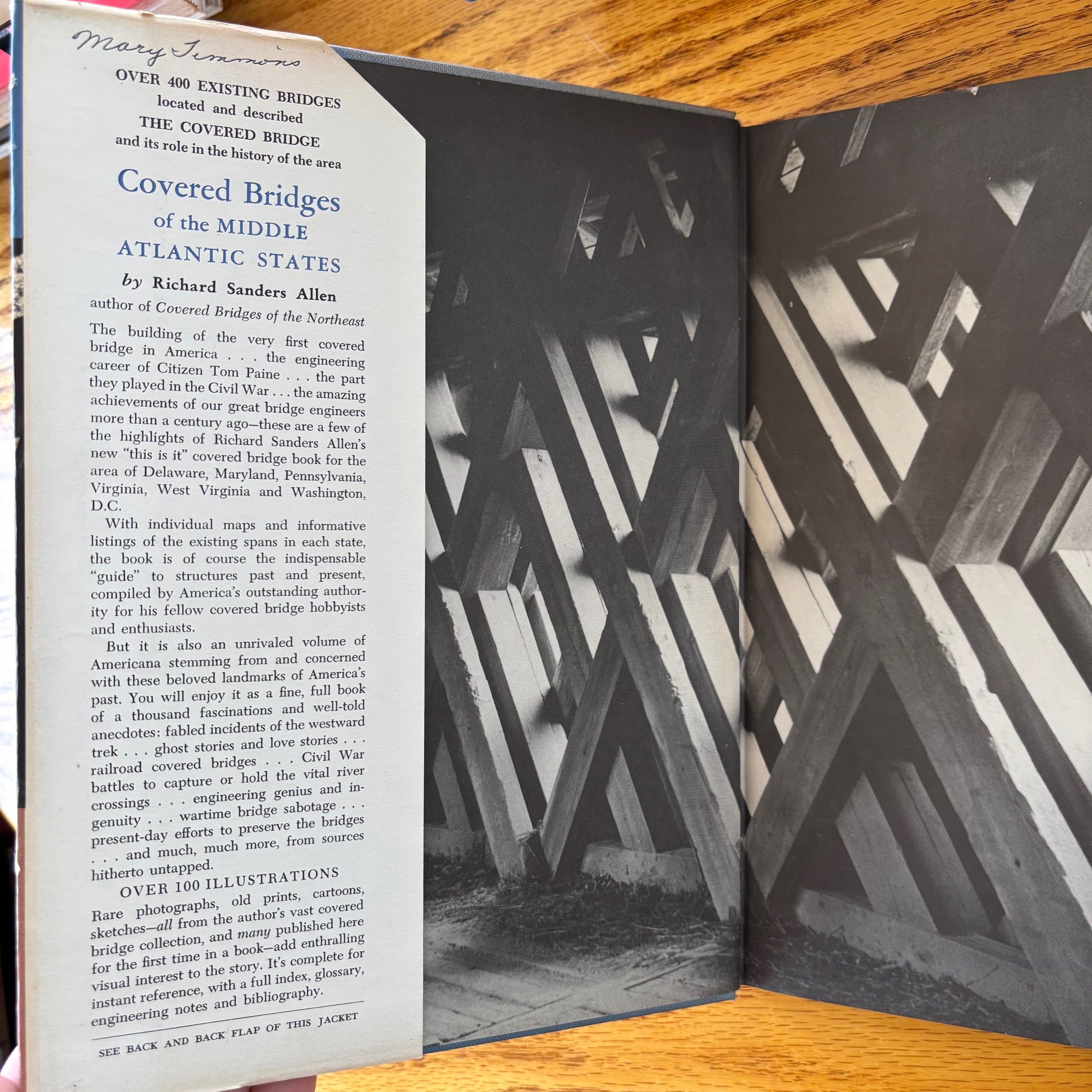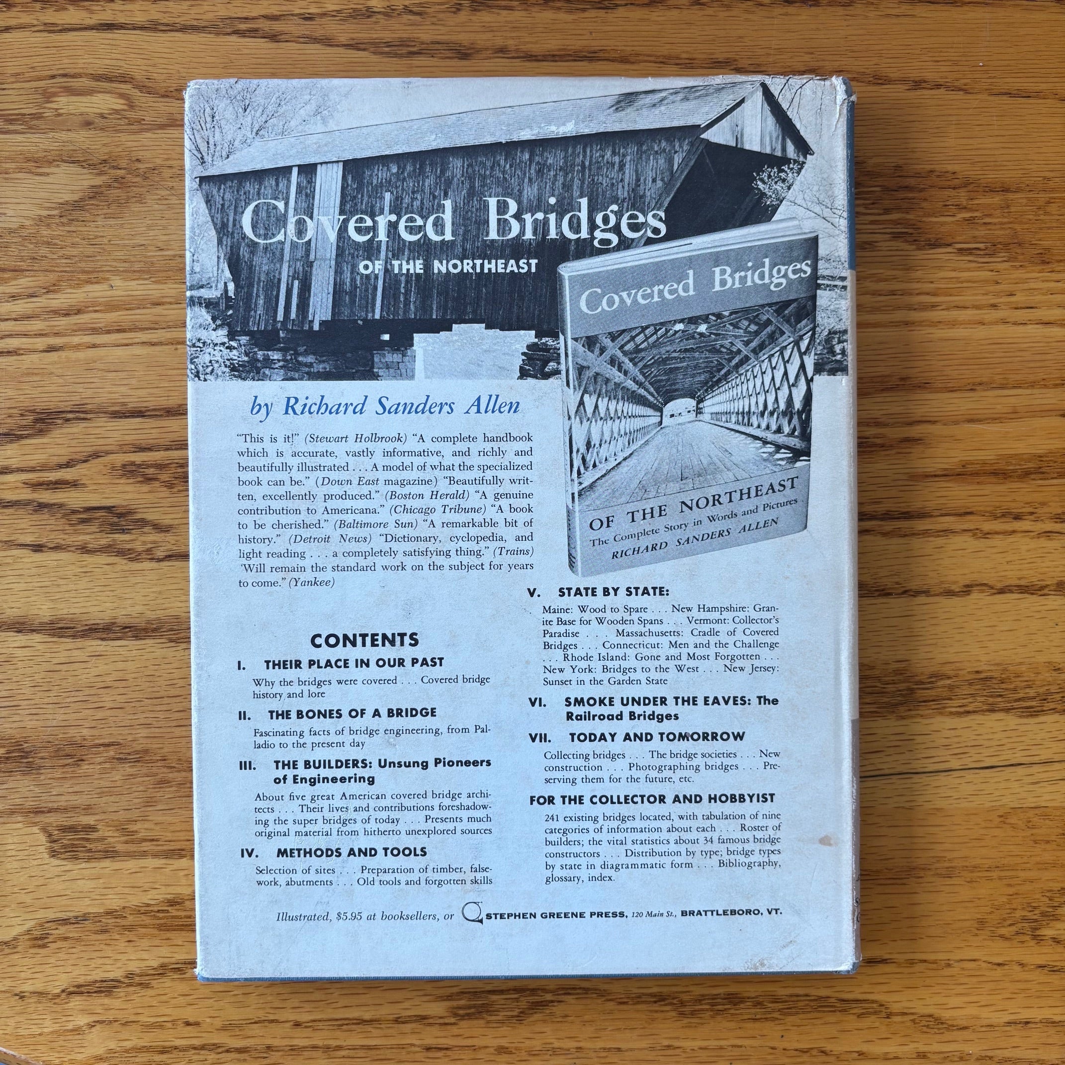 Richard Sanders Allen, ‘Covered Bridges of the Middle Atlantic States: Their Illustrated History in War and Peace,’ Stephen Greene Press, 1959. No edition stated–presumed first.