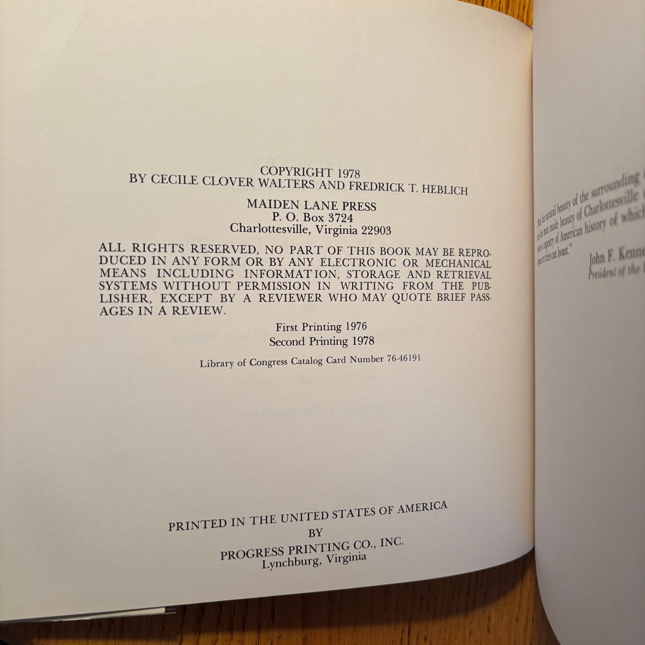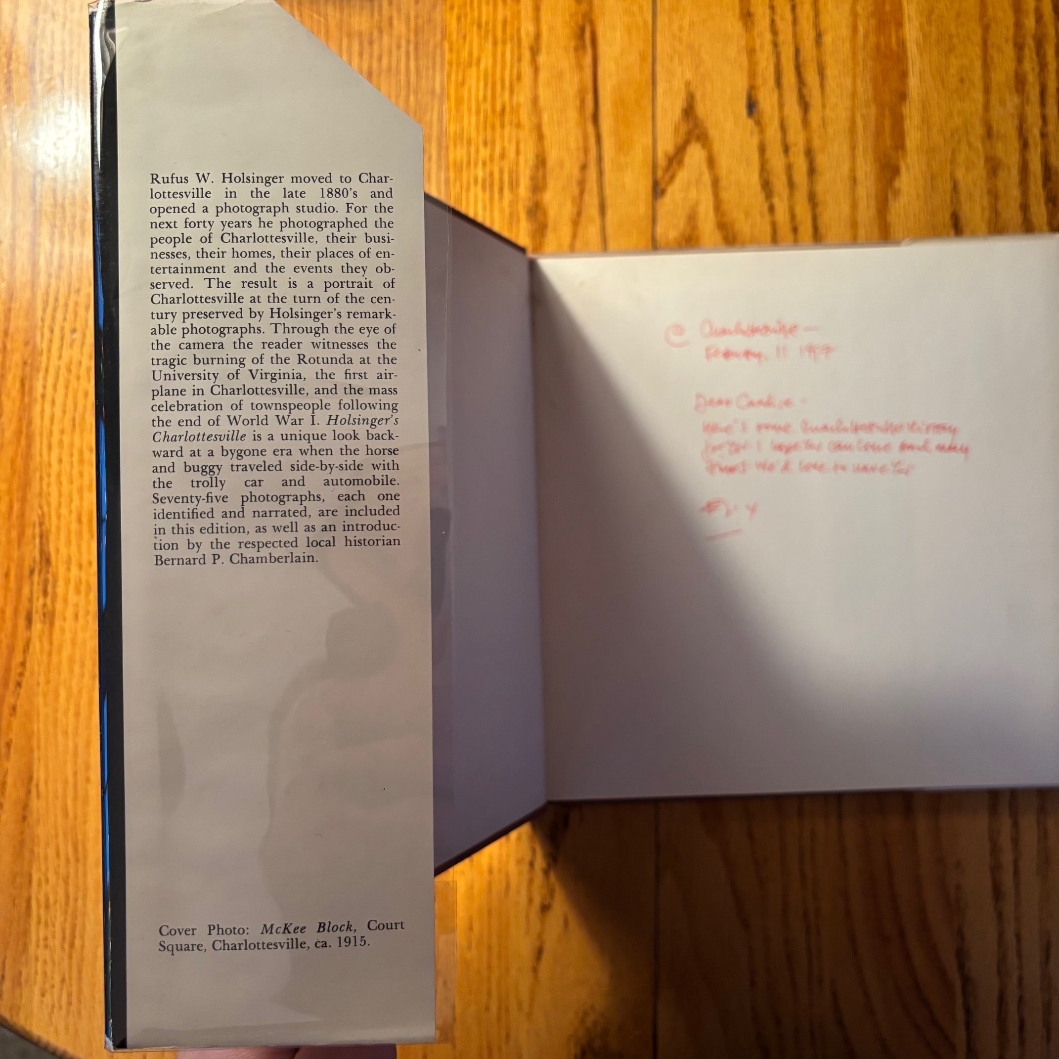 (Rufus W. Holsinger) F.T. Heblich, Jr., Cecile Clover Walters, ‘Holsinger’s Charlottesville: Selected Photographs from the Collection of Rufus W. Holsinger,’ Maiden Lane Press, 1976. Introduction by Bernard P. Chamberlain. First edition, second printing, 1978.