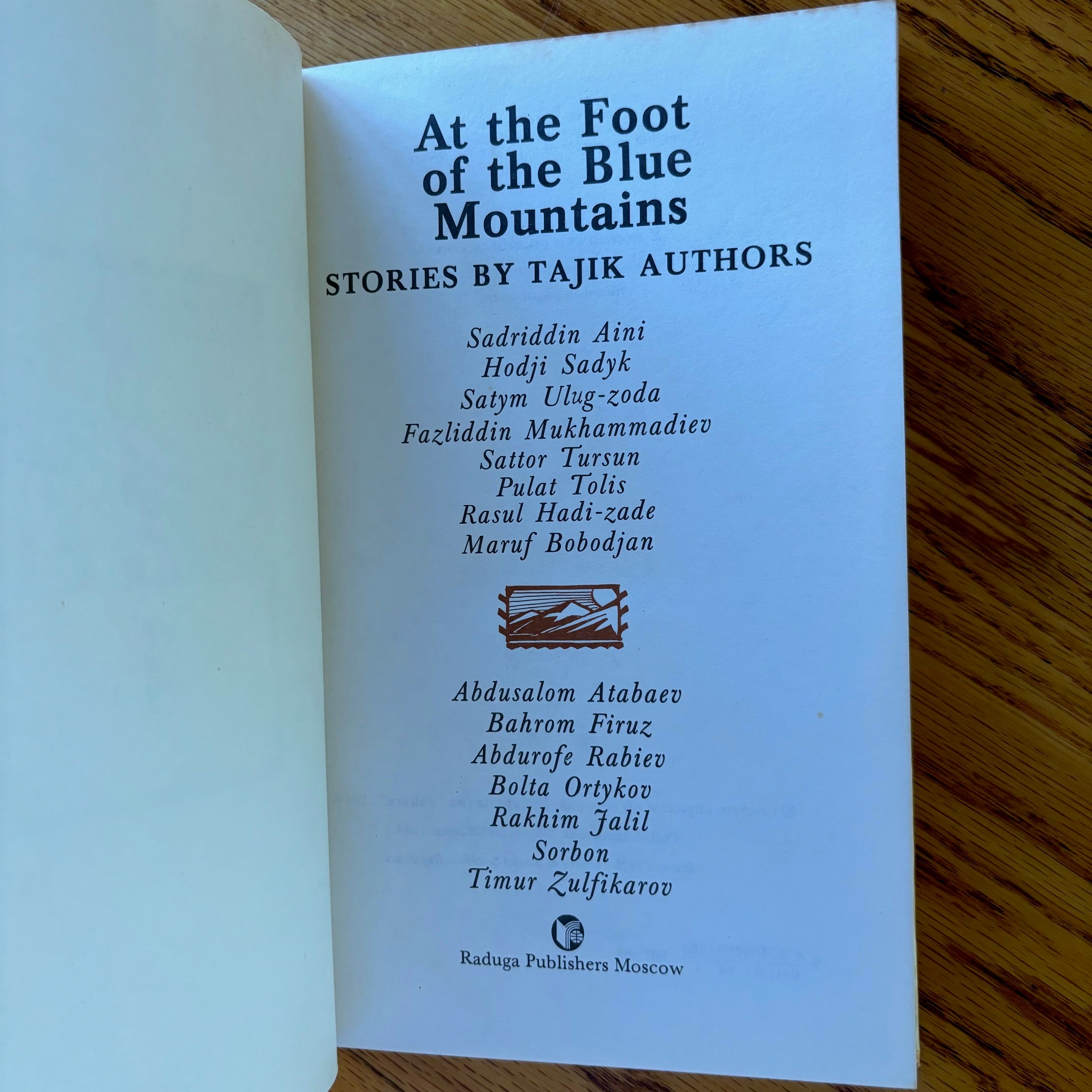 Shavkat Niyazi, ed., ‘At the Foot of the Blue Mountains: Stories by Tajik Authors,’ Raduga Publishers, 1984. No edition stated–presumed first.