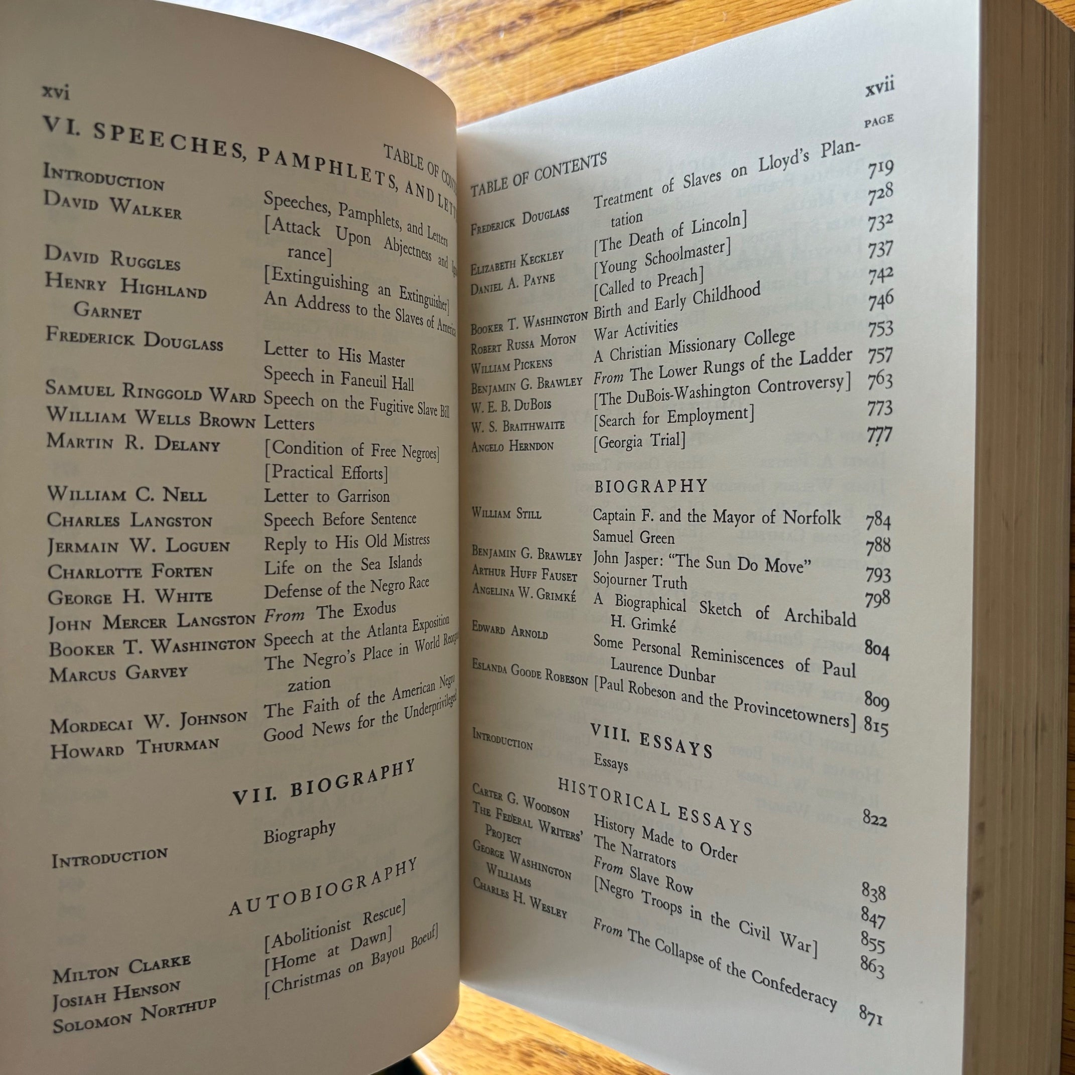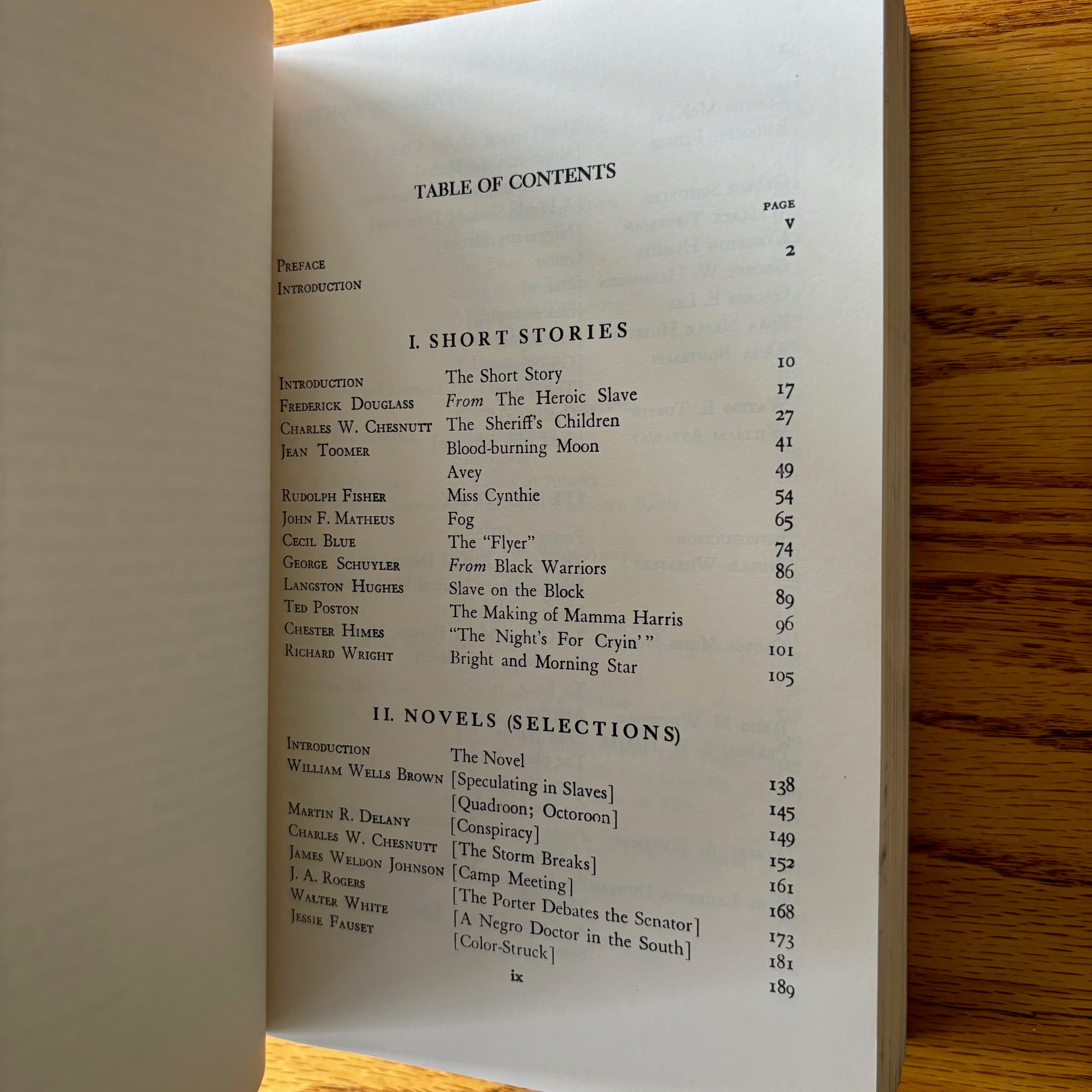 Thick paperback anthology which includes many classic authors–Frederick Douglass, Charles W. Chesnutt, Jean Toomer, Langston Hughes, Chester Himes, Richard Wright, Claude McKay, Zora Neale Hurston, Arna Bontemps, W.E.B. DuBois, Countee Cullen, and so many more. Also included is a sizeable section of folk literature and song. A comprehensive survey when it comes to early Afro-American literature.