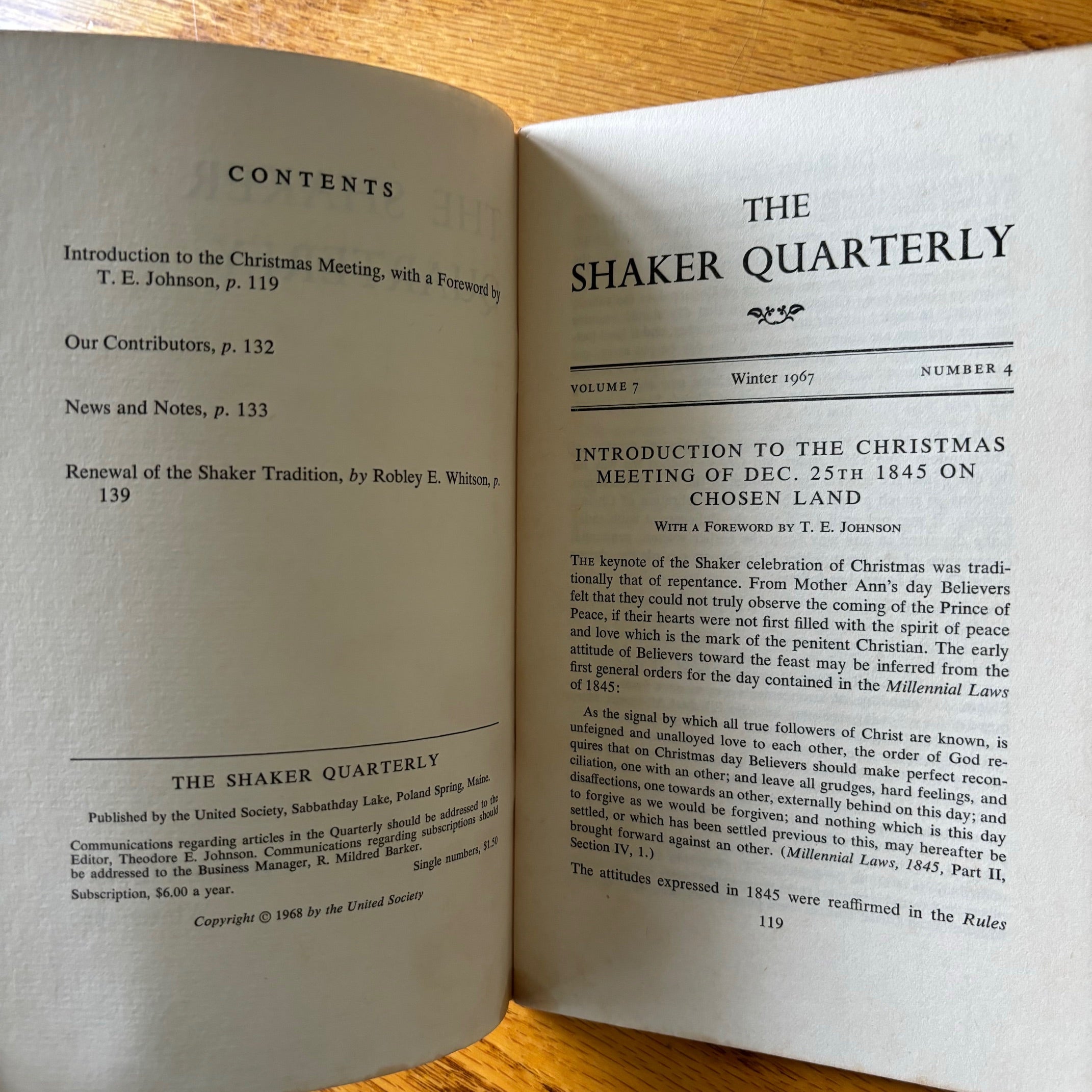 Theodore E. Johnson, ed., ‘The Shaker Quarterly’ Volume VII, No. 4, The United Society, Winter 1967.