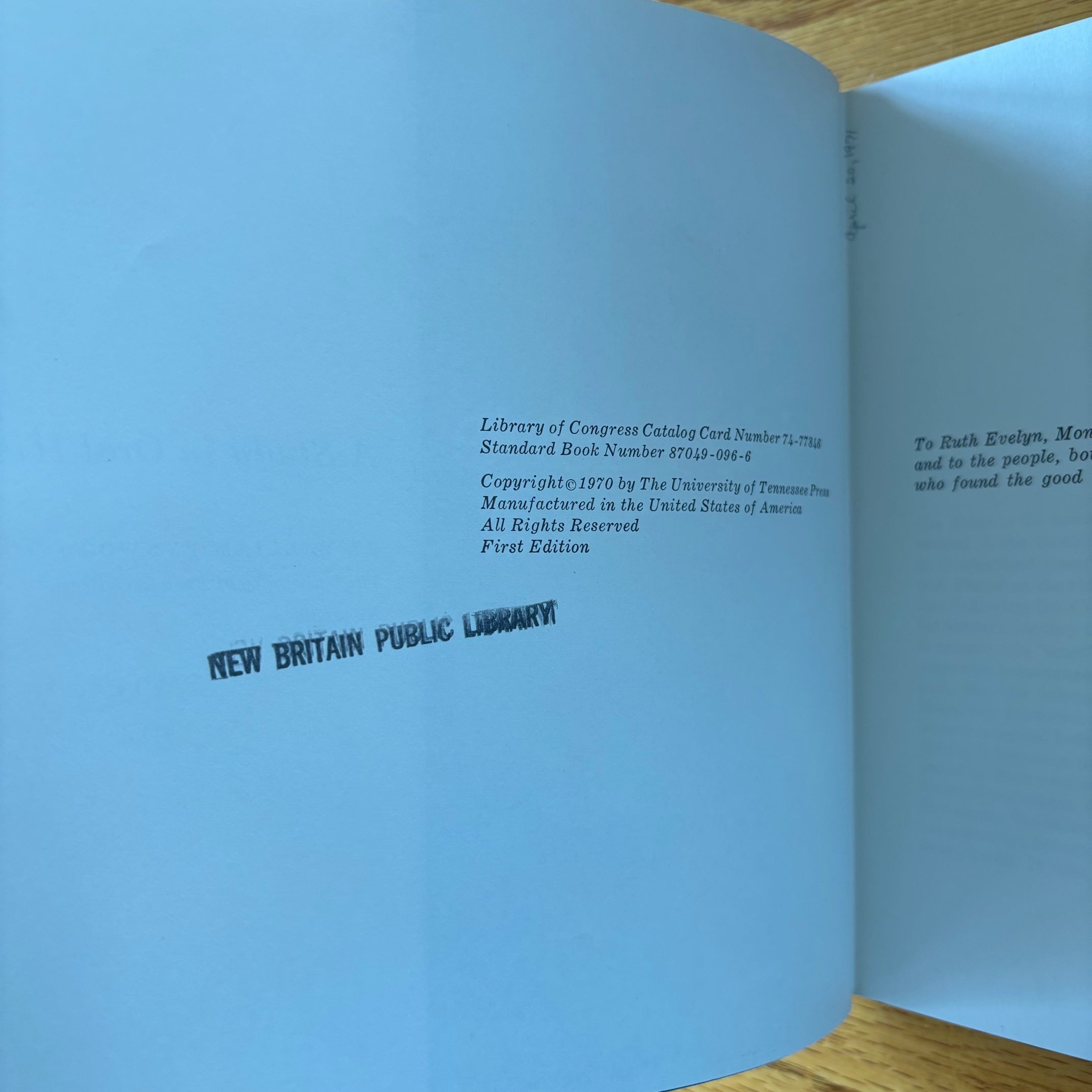 Ex-library: tear on jacket spine from sticker removal that extends to front and back panels. Stamps at all page edges. Catalogue numbers on title page. Stamp on copyright page. Cardholder on rear endpaper. Well-read but binding remains intact, interior clean.